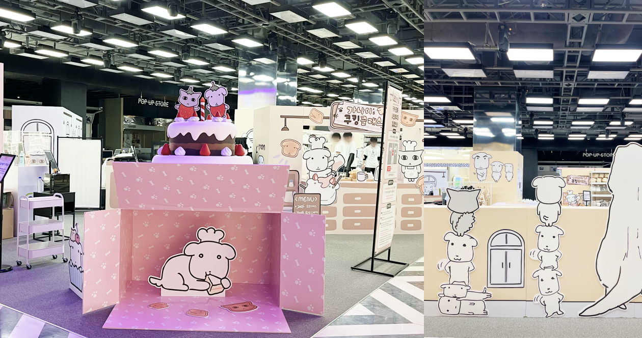 유통사 팝업스토어는 늘 공간 제약과 싸워야 하죠. 이 때문에 임팩트를 만들기 어렵다고 느끼는 브랜드도 많은데요. 지난 5월 더현대 서울에서 팝업스토어를 오픈한 가나디는 달랐어요.유통사 팝업스토에선 보통 칸막이를 세워 공간을 분리하고 메인 테마에 맞는 프린팅을 하는 게 일반적이에요. 그런데 가나디는 여기에 양면 등신대를 설치했어요. 덕분에 캐릭터가 팝업스토어 내부를 훔쳐보는 듯한 입체적인 연출이 완성되며 팬들의 이목을 집중시켰죠. 메인 포토존인 케이크 구조물 아래도 박스 형태로 공간을 마련해 가나디가 케이크를 몰래 훔쳐먹는 것처럼 꾸며 웃음을 자아냈고요.💡 지난 2월 열린 점프샵 팝업스토어도 비슷한 접근을 보여줬어요. 벽에 애니 속 캐릭터의 실제 크기 스티커를 붙여 키재기 포토존을 만들었는데요. 좋아하는 캐릭터와 키 차이 인증샷을 유발하며 엄청난 화제가 됐거든요. 이처럼 한정된 공간이라도 고객이 공감하는 포인트만 정확히 안다면 평범했던 벽이 바이럴 포인트가 될 수도 있어요. |